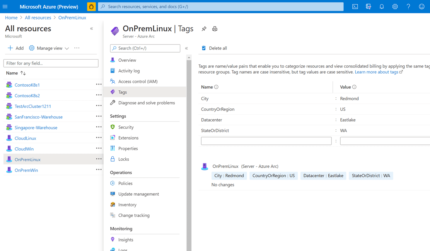 - Centrally manage a wide range of resources including Windows Server on Azure, Linux on Azure, SQL server, Azure Kubernetes Service, and Azure Arc-enabled data services.