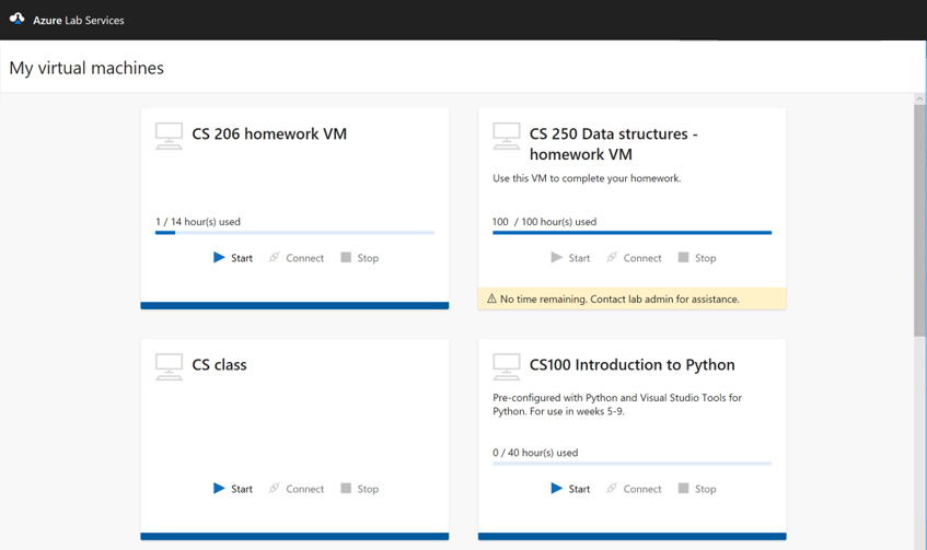 Configure lab virtual machines with the right content and give each user a set number of hours to complete their homework or projects.