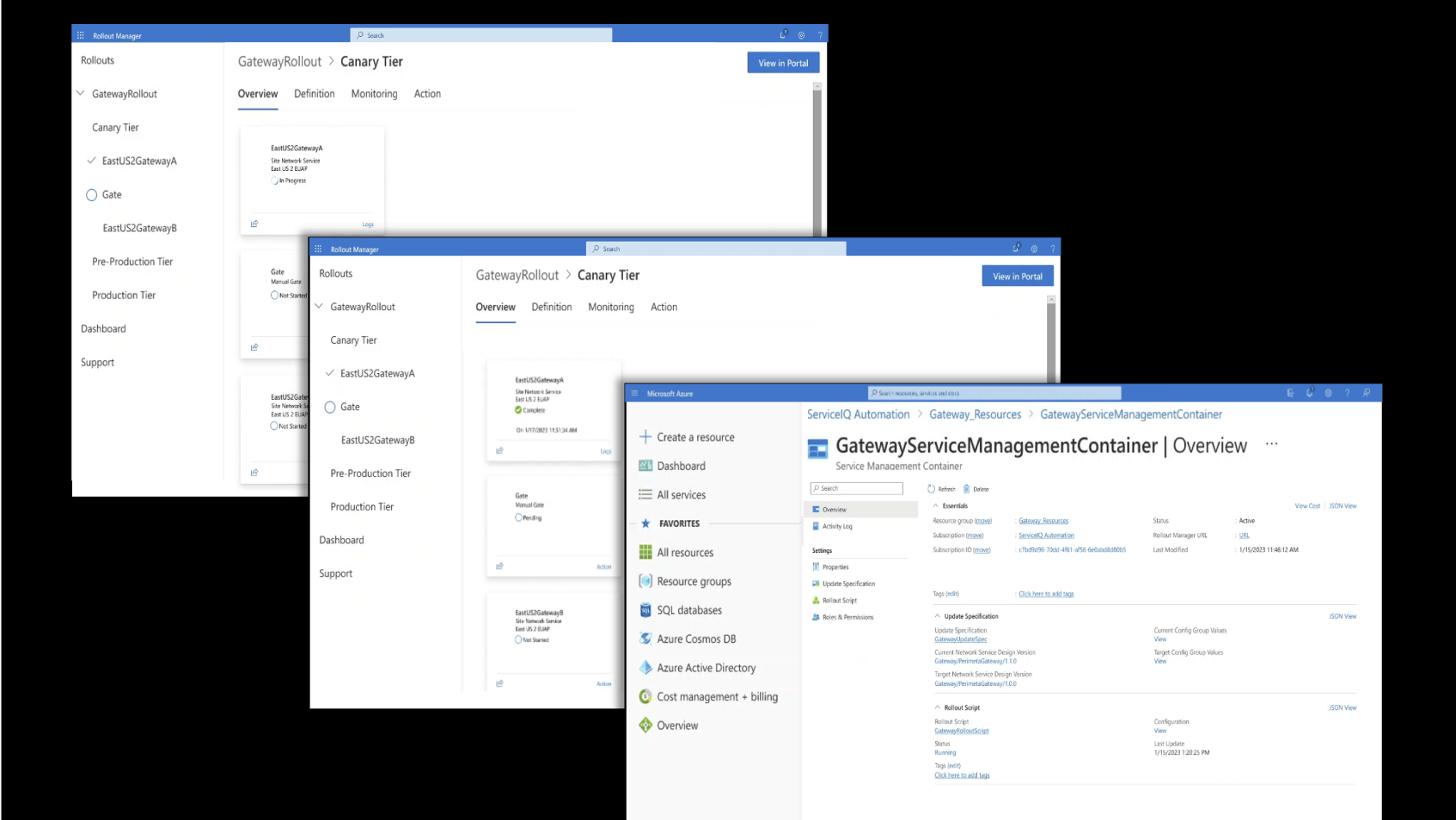 Reduce the impact of errors when executing fleet-wide software rollouts with safe-deployment practices. Use workflow actions like gates, delays, and sequence control to ensure the right task happens at the right time. When cancellations interrupt running operations, use rollbacks to revert. Blast radius graphs enable you to capture unexpected results, and disconnected mode allows operations even if a site becomes isolated.