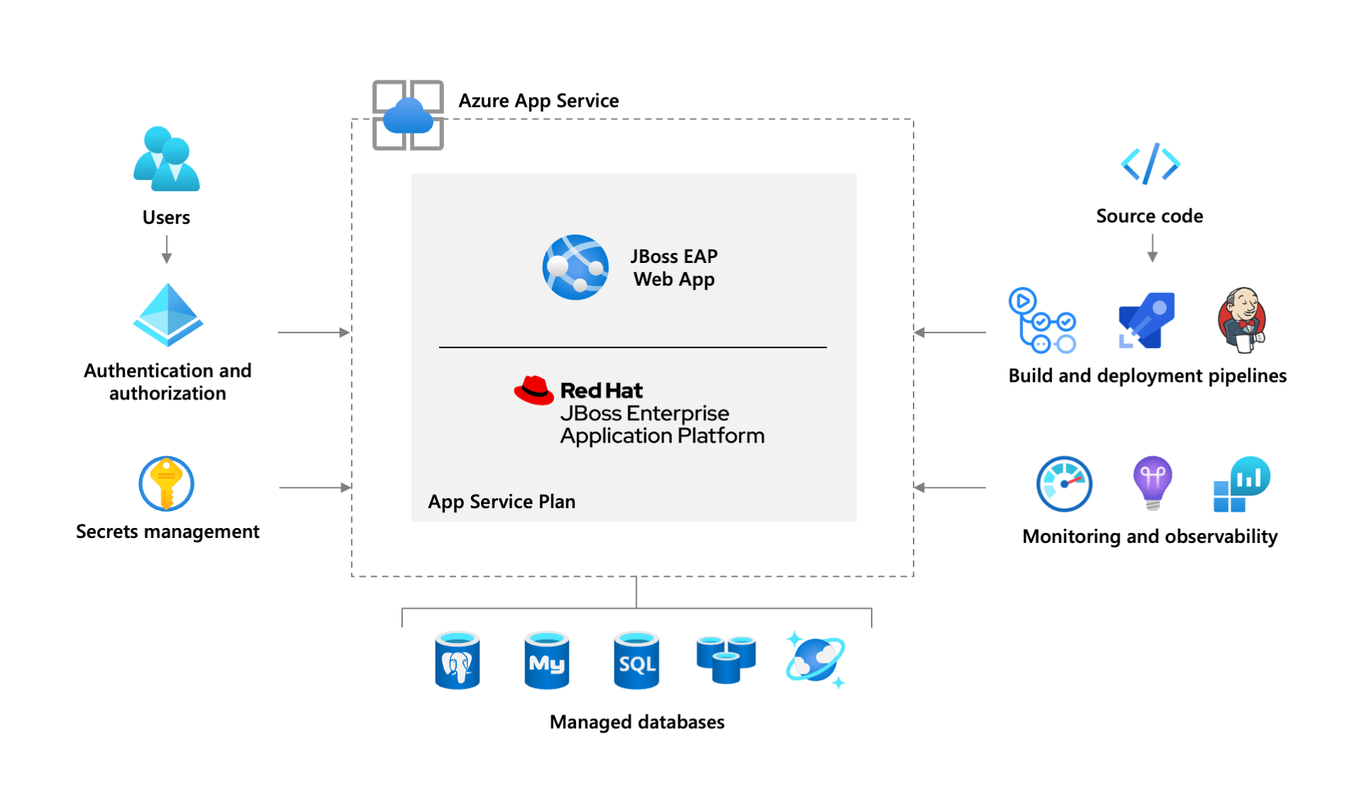 Deploy your enterprise Java apps on a fully managed service with Red Hat JBoss Enterprise Application Platform (EAP) on Azure App Service. Get the fully managed experience of App Service with joint support from Microsoft and Red Hat.