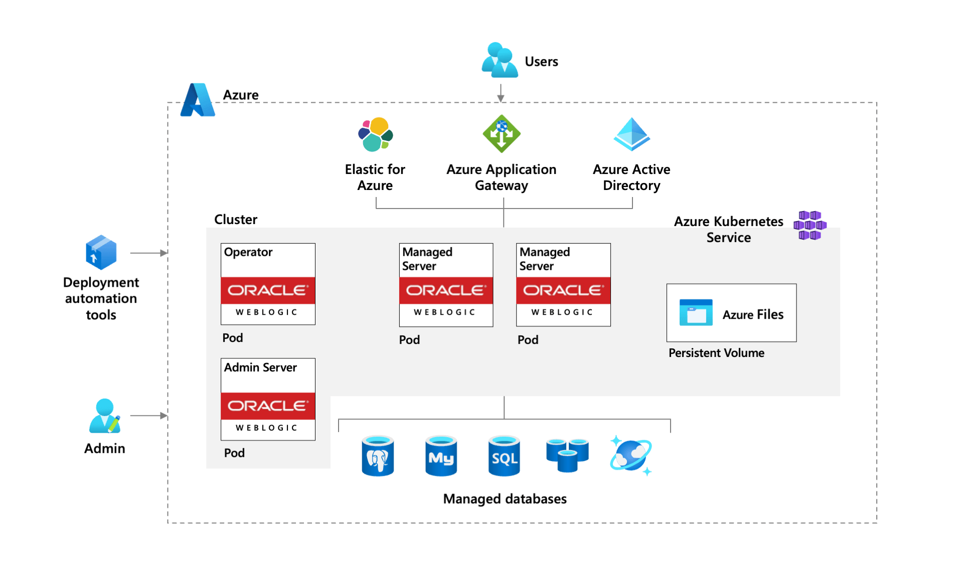 Run Java EE applications with Oracle WebLogic Server on AKS with solutions validated by Microsoft and Oracle. Easily create production-ready deployments with instructions, samples, and best practices.