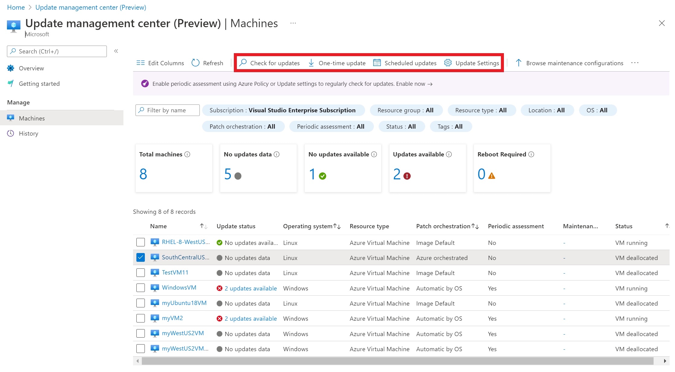- Start managing updates for your machines natively in Azure with an intuitive user experience.
