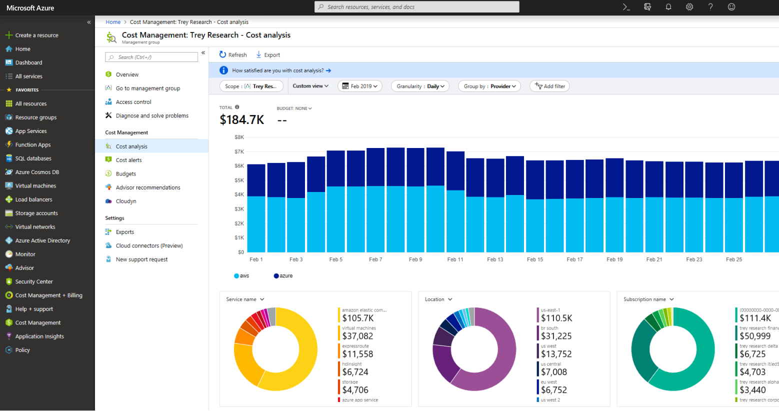 Microsoft Cost Management for Azure is available at no additional cost. Microsoft Cost Management for AWS is charged at 1 percent of the total AWS managed spend at general availability, and free during preview.