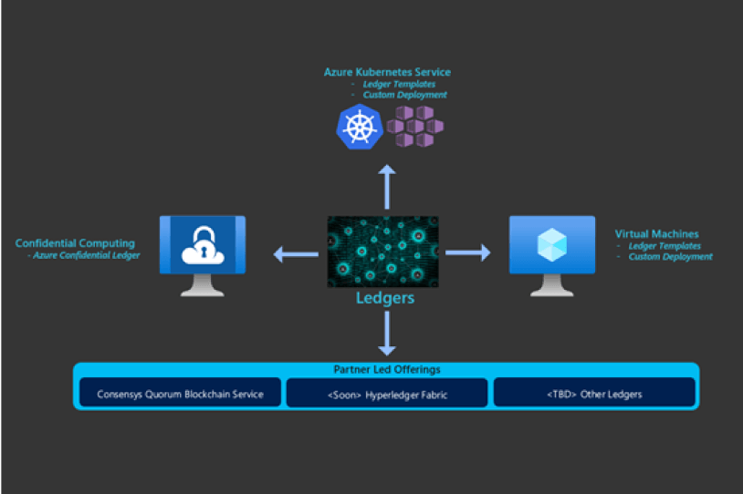 Blockchain technologies built on top of Azure confidential computing use hardware-based privacy to enable data confidentiality and secure computations.