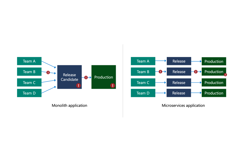 Microservices are an architectural approach to building applications where each core function, or service, is built and deployed independently. Microservice architecture is distributed and loosely coupled, so one component’s failure won’t break the whole app. Independent components work together and communicate with well-defined API contracts. Build microservice applications to meet rapidly changing business needs and bring new functionalities to market faster.