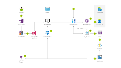 This mobile client app offers social image sharing with a companion web app. The app back end service does background image processing using an Azure Function and can notify users of progress via a notification hub.